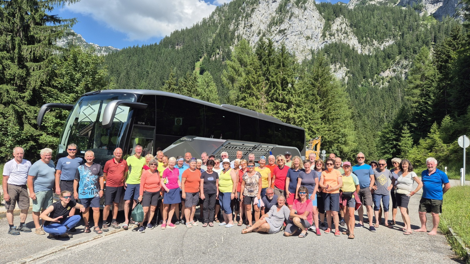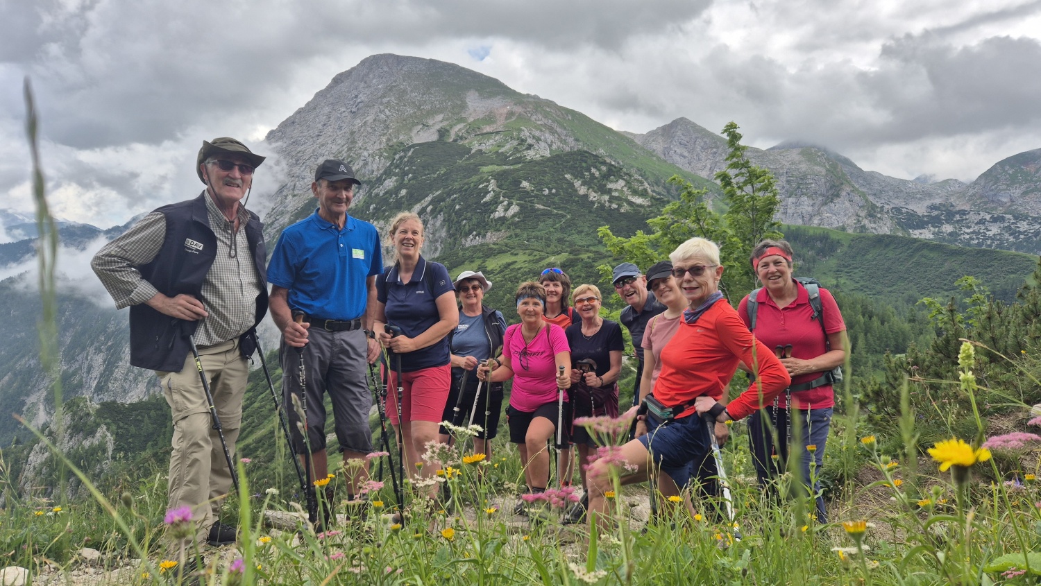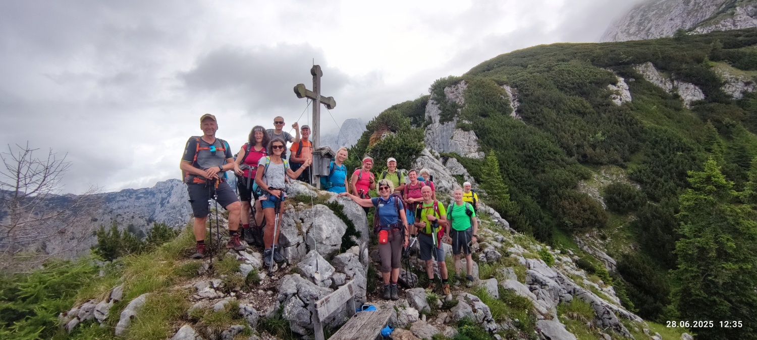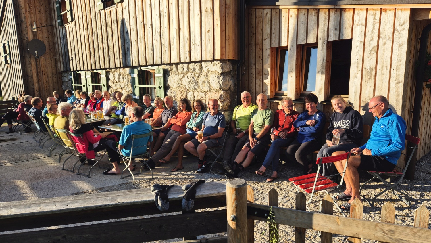 Bereits im Sommer 2024 begannen die Planungen für die zweitägige Jubiläumstour aus Anlass des 55-jährigen Bestehens der DAV- Ortsgruppe Freyung, welche am 10. Juni 1970 im Hotel zur Post in Freyung gegründet wurde. 55 Mitglieder bekamen die Möglichkeit, auf verschiedenen Routen ein gemeinsames Ziel zu erwandern: das Schneibsteinhaus in den Berchtesgadener Bergen. Diese Teilnehmerzahl war rasch erreicht und die detaillierten Planungen für diesen besonderen Ausflug konnten beginnen. Am letzten Juniwochenende war es dann so weit! Mit einem komfortablen Reisebus der Fa. Prager, Freyung, ging die Fahrt über Salzburg nach Hinterbrand bei Berchtesgaden. Auf etwa 1100 m Seehöhe begann dann nach Komplettierung der Ausrüstung der Aufstieg in Richtung „Schneibsteinhaus“. Die teilnehmenden Tourenleiter der Ortsgruppe haben sich im Vorfeld verständigt, dass jeder eine andere, mehr oder weniger anspruchsvolle Route für den Aufstieg plant und anbietet, damit dann der Start am Samstag reibungslos von statten geht. So ging Hans Donaubauer mit seiner Gruppe über die Brettgabel des Göllstockes und zurück über das Hohe Brett (2340m), Lothar Schäfer über die Königsbergalm und Rita Gell über die Mitterkaseralm den direkten Weg zur Hütte.