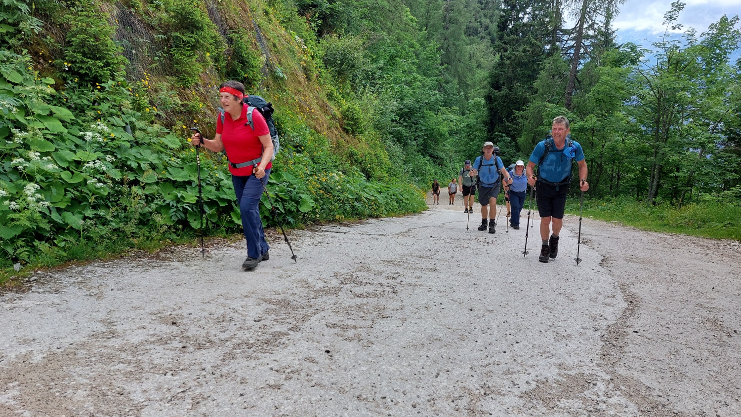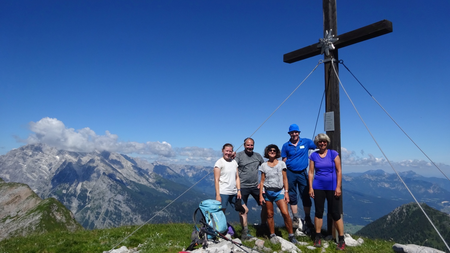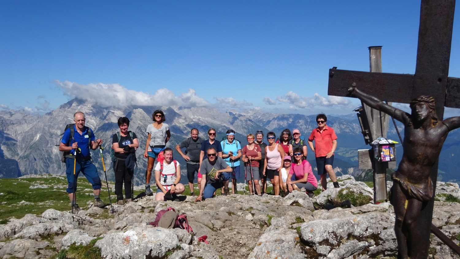 Am nächsten Tag gab es erneut das Angebot, den Abstieg auf unterschiedlichen Routen anzugehen. So ging Rita die „Kleine Reibn“, Hans auf den Schneibstein und dann über das Schneibsteinhaus zurück über die Königsbachalm und Lothar führte seine Teilnehmer über die Königstalalm und Priesbergalm unterhalb des Jenners zurück zum Ausgangspunkt . So hatten alle wunderschöne Wege und Steige, allerdings bei großer Hitze, zu meistern. Josef Schwaiberger hatte eine Abstiegsroute geplant, die über den Pfaffenkegel, dann abwärts über die Krautkaseralm nach Hinterbrand führte und anschließend um den Brandkopf herum in einem wunderschönen schattigen Bachtal bis nach Königssee und dann nach Schönau verlief. Alle Gruppen kamen pünktlich zu den vereinbarten Abfahrtsorten und Abfahrtszeiten an, so dass noch genügend Zeit blieb, sich von der jeweiligen Tour kurz zu erholen und z.B. die verschwitzte Kleidung zu wechseln. Pünktlich waren dann alle zur Abfahrt bereit, auch der Fahrer war gut erholt für die Rückfahrt und so ging es dann gut gelaunt mit interessantem Meinungsaustausch und regen Diskussionen über die unterschiedlichen Routen und Erlebnissen dieser beiden besonderen Wandertage wieder über Marktschellenberg und Salzburg zurück nach Passau, Waldkirchen und Freyung.