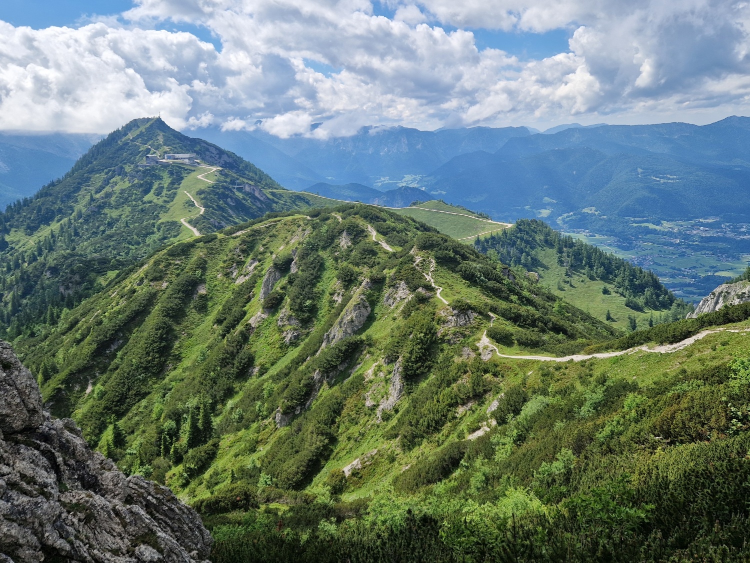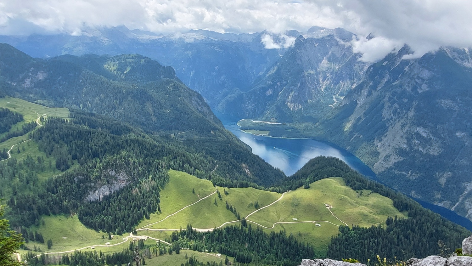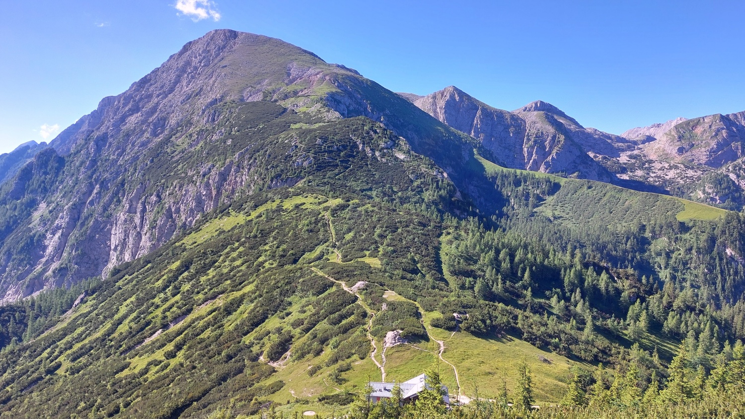 Am nächsten Tag gab es erneut das Angebot, den Abstieg auf unterschiedlichen Routen anzugehen. So ging Rita die „Kleine Reibn“, Hans auf den Schneibstein und dann über das Schneibsteinhaus zurück über die Königsbachalm und Lothar führte seine Teilnehmer über die Königstalalm und Priesbergalm unterhalb des Jenners zurück zum Ausgangspunkt . So hatten alle wunderschöne Wege und Steige, allerdings bei großer Hitze, zu meistern. Josef Schwaiberger hatte eine Abstiegsroute geplant, die über den Pfaffenkegel, dann abwärts über die Krautkaseralm nach Hinterbrand führte und anschließend um den Brandkopf herum in einem wunderschönen schattigen Bachtal bis nach Königssee und dann nach Schönau verlief. Alle Gruppen kamen pünktlich zu den vereinbarten Abfahrtsorten und Abfahrtszeiten an, so dass noch genügend Zeit blieb, sich von der jeweiligen Tour kurz zu erholen und z.B. die verschwitzte Kleidung zu wechseln. Pünktlich waren dann alle zur Abfahrt bereit, auch der Fahrer war gut erholt für die Rückfahrt und so ging es dann gut gelaunt mit interessantem Meinungsaustausch und regen Diskussionen über die unterschiedlichen Routen und Erlebnissen dieser beiden besonderen Wandertage wieder über Marktschellenberg und Salzburg zurück nach Passau, Waldkirchen und Freyung.