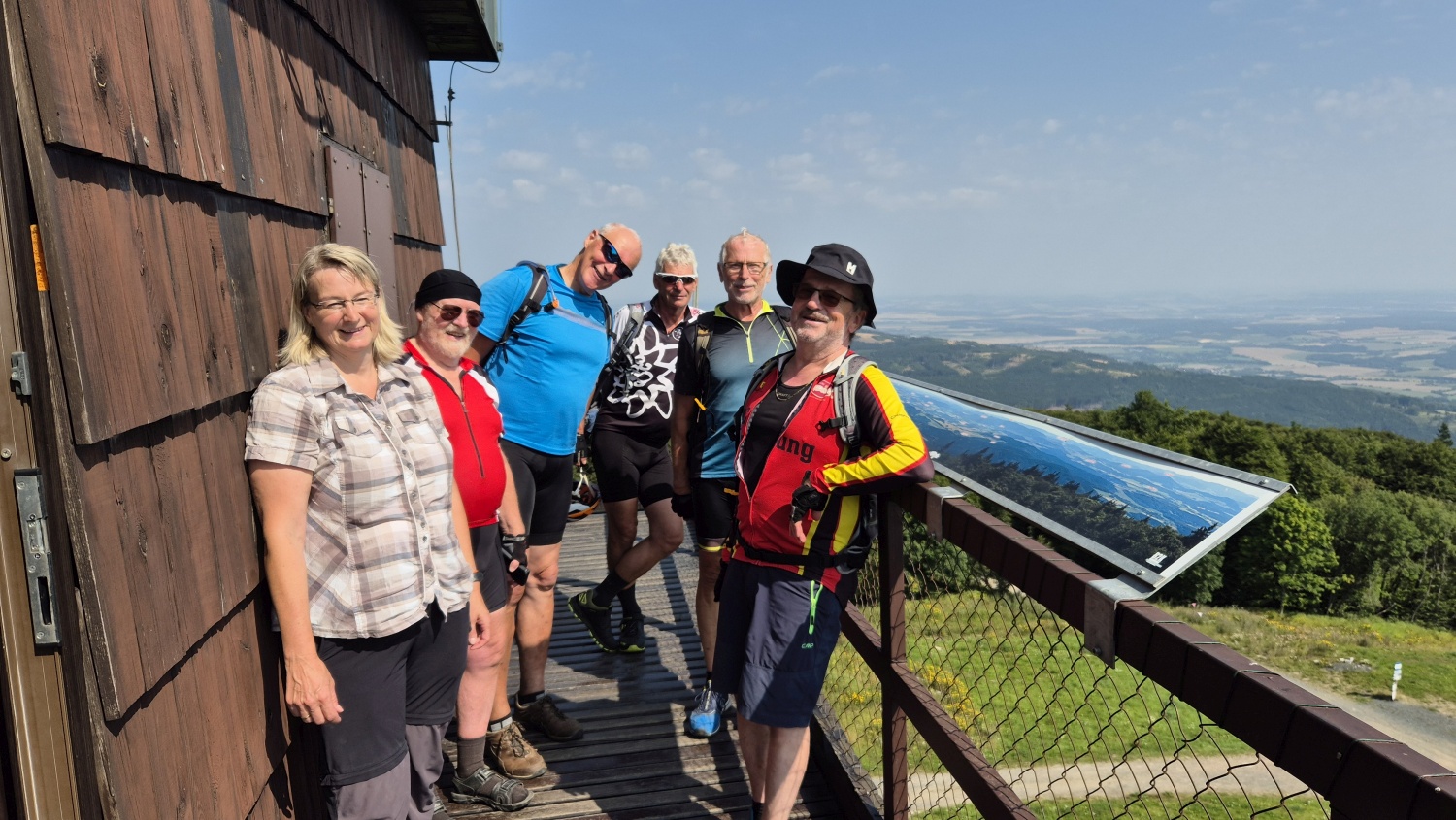 Für das Programm 2025 der DAV- Sektion Passau und der Ortsgruppe Freyung hatte Franz Uhrmann für Maria Himmelfahrt eine E-Bike Tour auf den Nordgipfel des Böhmerwaldes, den 1042 m hohen Cerchov in Tschechien, mit 44 km und 1100 hm ausgeschrieben.