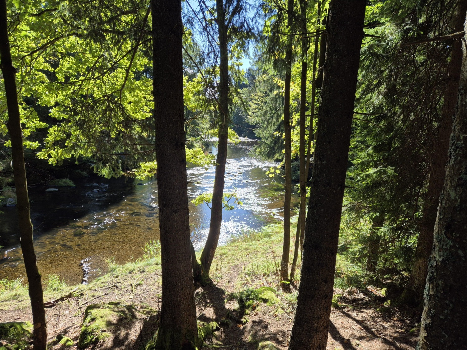 Der weitere Weg verlief dann fast ohne Steigung entlang eines Kanals, an dem dazugehörigen Kraftwerk vorbei, bis zur Eisensteinermühle. Nach über vier Stunden Gehzeit wurde die eindrucksvolle Flusswanderung mit einer gemütlichen Einkehr im Biergarten der Grenzglashütte direkt am Bahnhof Bayerisch Eisenstein beendet.