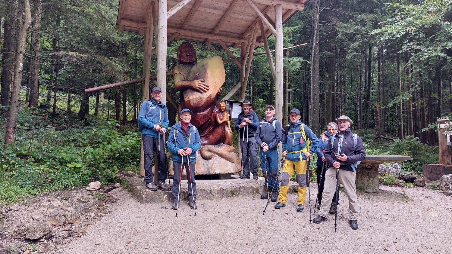 Dieser startete mit der Fahrt am Ufer entlang nach Ebensee, zum Ausgangspunkt der nächsten Tour. Kurz nach dem Parkplatz (am See) führte der Weg hinein in einen steilen Waldweg entlang der Kreuthwand, bis auf ca. 1050 m die Spitzlsteinalm erreicht war. Über einen felsigen Bergkamm und immer entlang der Bergflanke führt der Weg hinauf zum felsigen Gipfelaufbau des Erlakogel auf 1575 m Höhe, der im Volksmund als „Schlafende Griechin“ bekannt ist. Von hier hat man wieder einen wundervollen Blick auf den Traunstein und den Traunsee, sowie auf das gesamte Tote Gebirge und das Höllengebirge. Nach einer kurzen Gipfelpause und den obligatorischen Fotos ging der Weg wieder zurück, vorbei am Ebenseer Wasserkogel bis zur Spitzlsteinalm, wo eine kurze Rast eingelegt wurde. Dann war der Aufstiegsweg auch wieder der Rückweg durch den lichten Buchenwald nach Rindbach bei Ebensee. So vergingen die zwei Tage wie im Flug. Bei der Rückfahrt, entlang des Traunsees, wurde noch in Traunkirchen eingekehrt, bevor dann die Fahrt zurück nach Waldkirchen folgte.